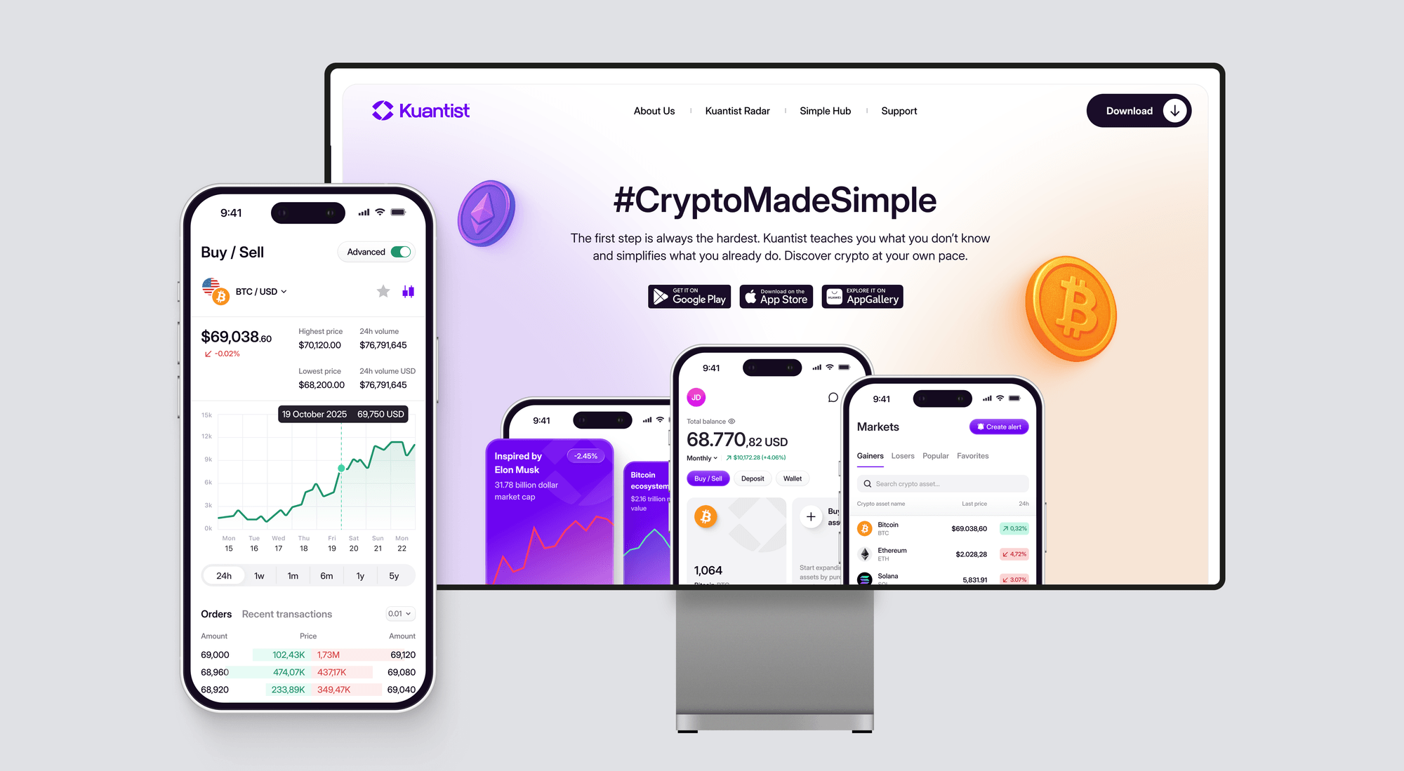 After aligning on scope and product direction, we began with Kuantist’s mobile application, treating it as the primary touchpoint for everyday crypto interaction. In a sector where regulations can shift overnight and compliance requirements evolve rapidly, the product needed to be built for adaptability from day one. Rather than designing static interfaces, we focused on establishing a modular design system that could respond to structural change without breaking the experience.